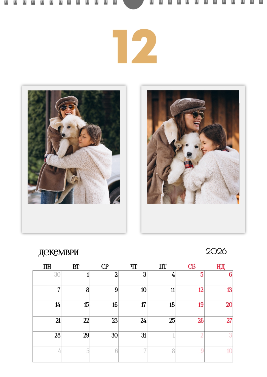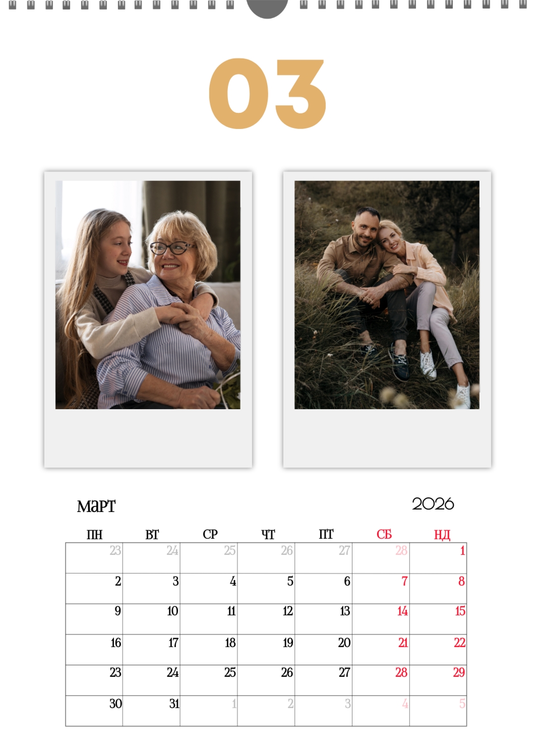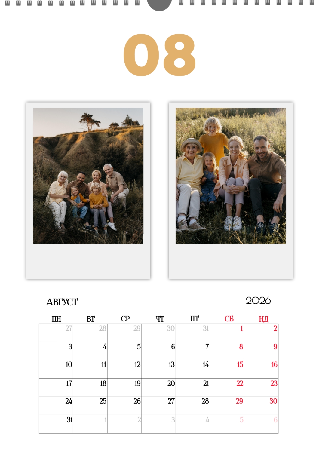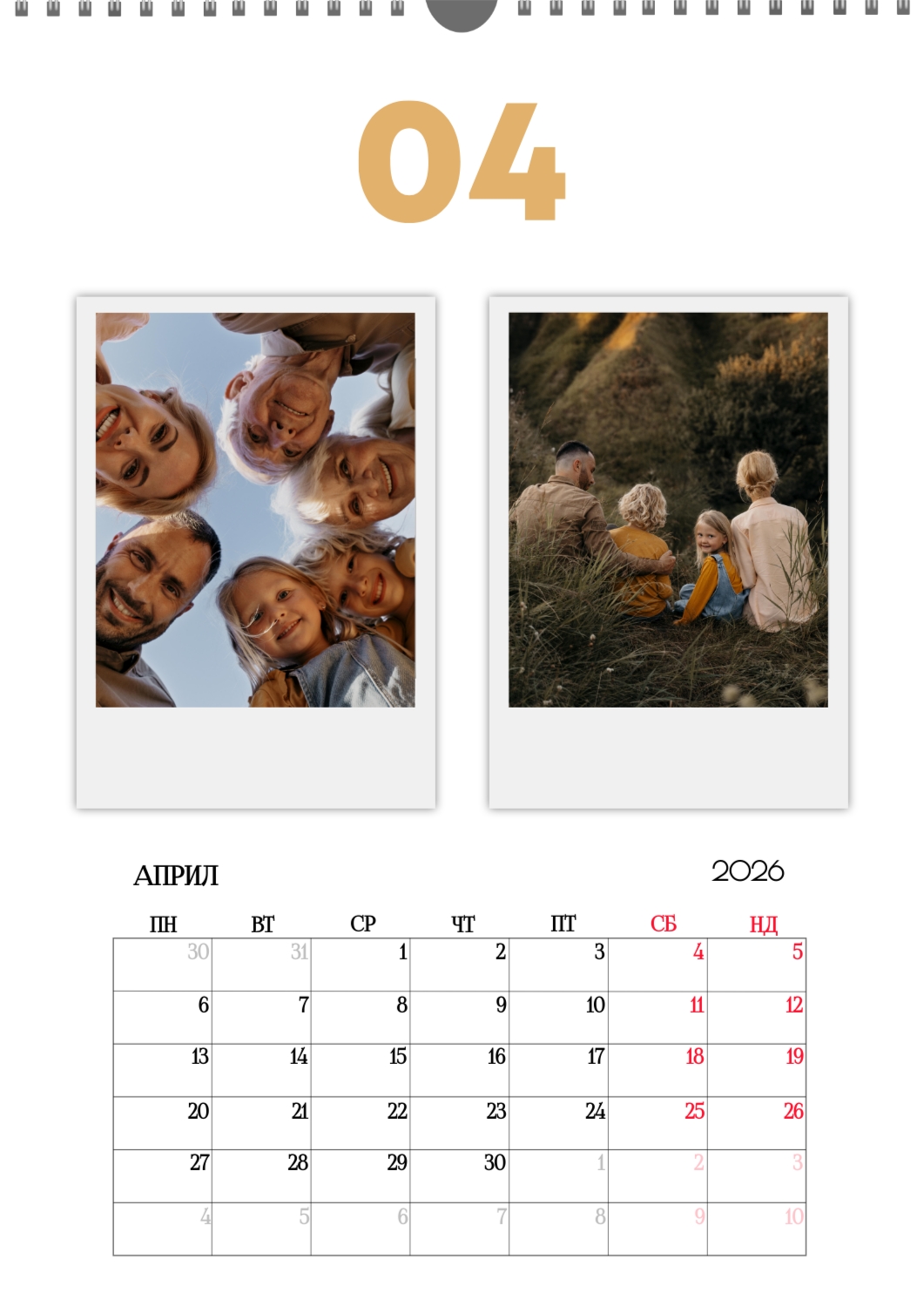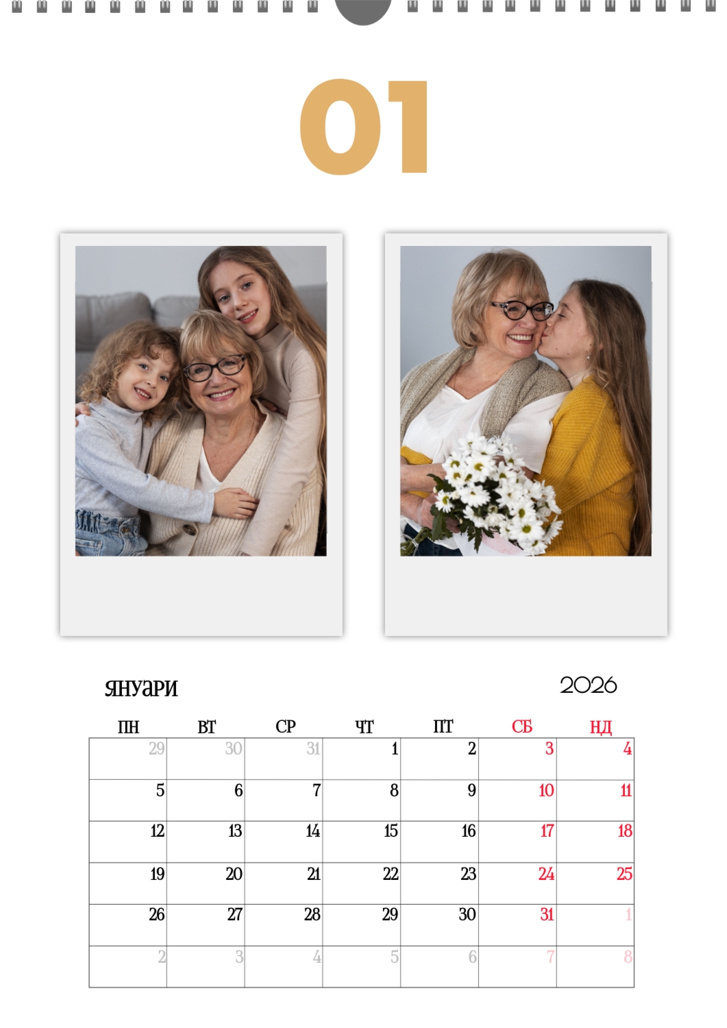 Готовият шаблон за стенен календар" нашето семейство " е създаден за тези, които ценят топлите спомени, атмосферата у дома и искат да проектират всеки месец от годината с душа. Тя се основава на меки, хармонични цветове и спретнати декоративни елементи, които подчертават снимката, без да отвличат вниманието от основното. Такъв календар е идеален за двойки, родители с деца, баби и дядовци, както и за всички, които искат да запазят запомнящите се моменти в разбираема и красива форма. Той е еднакво подходящ както като личен аксесоар за стена у дома, така и като топъл подарък за близки, колеги или клиенти. В онлайн дизайнера този шаблон лесно се трансформира в индивидуални задачи. Можете да замените снимките с любимите си снимки, да изберете различен стил на шрифта, да промените цветовете на надписите и акцентите, да добавите имена, важни дати, запомнящи се събития и семейни празници. Всеки елемент в шаблона може да бъде преместен, мащабиран или изтрит и, ако желаете, да добавите нови декоративни детайли, например малки икони, рамки или тематични изображения. Календарът" нашето семейство " е подходящ не само за домашна употреба. Често се използва от фотографи за създаване на готови продукти за клиенти, детски студия за подаръци на родители, семейни центрове за творчество, както и ръчно изработени майстори, които проектират уютни комплекти и сувенири. Благодарение на удобството на онлайн конструктора, работата с шаблона е напълно неусложнена-дори ако за първи път създавате персонализиран дизайн, процесът ще бъде интуитивен и приятен.