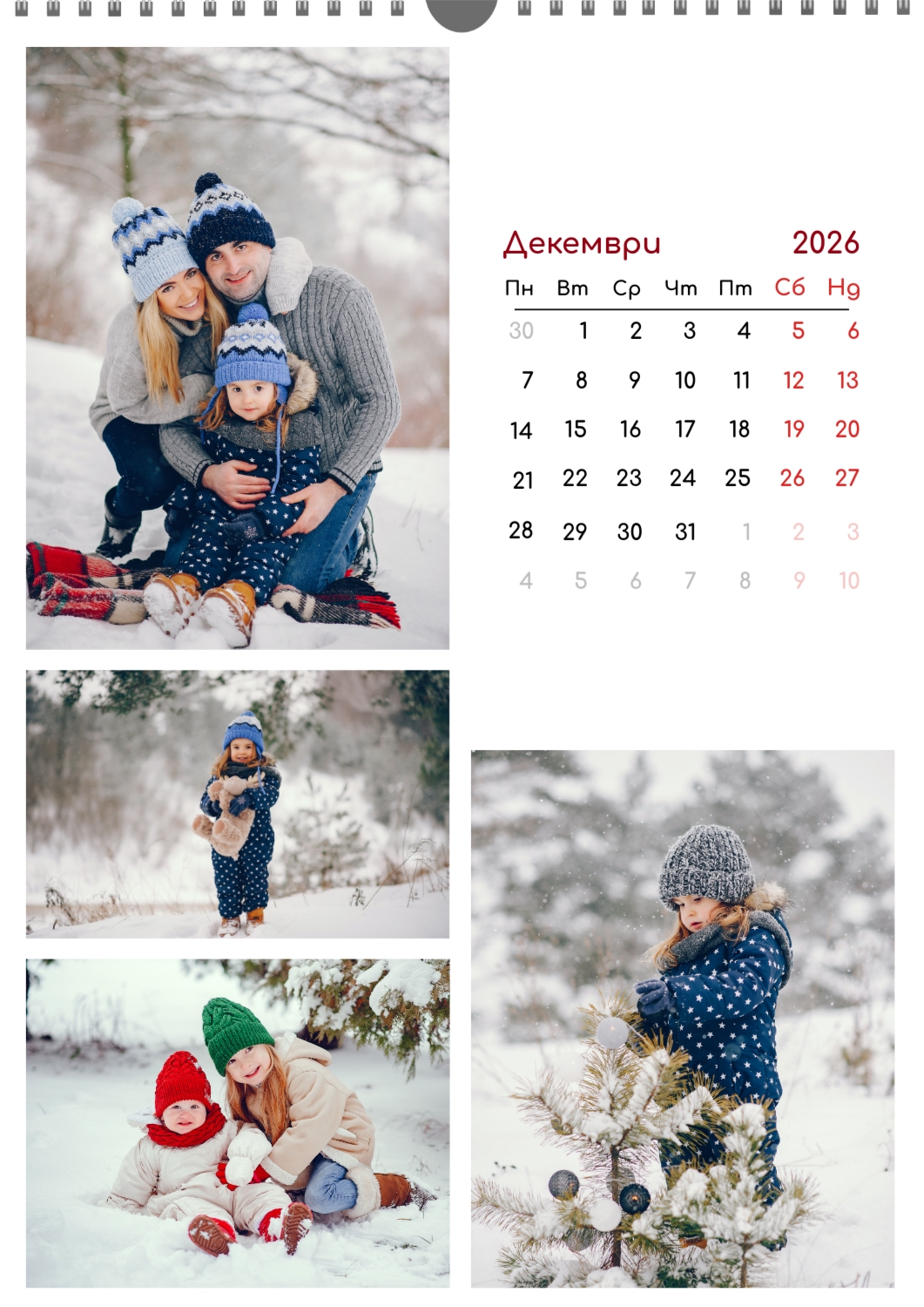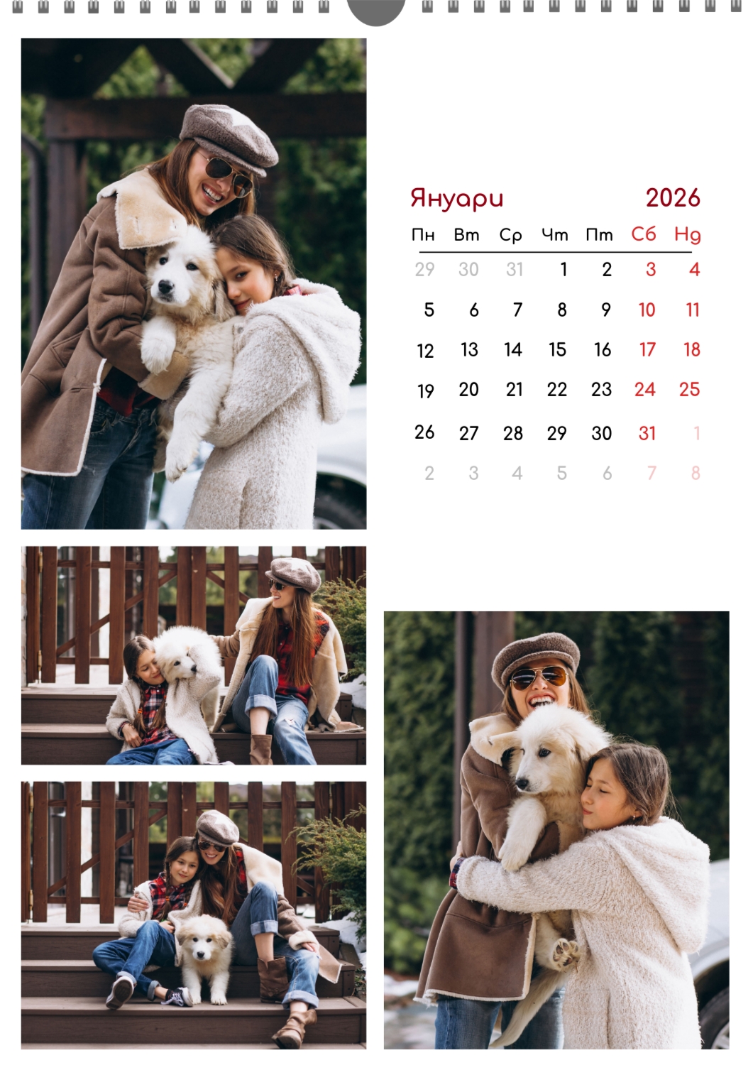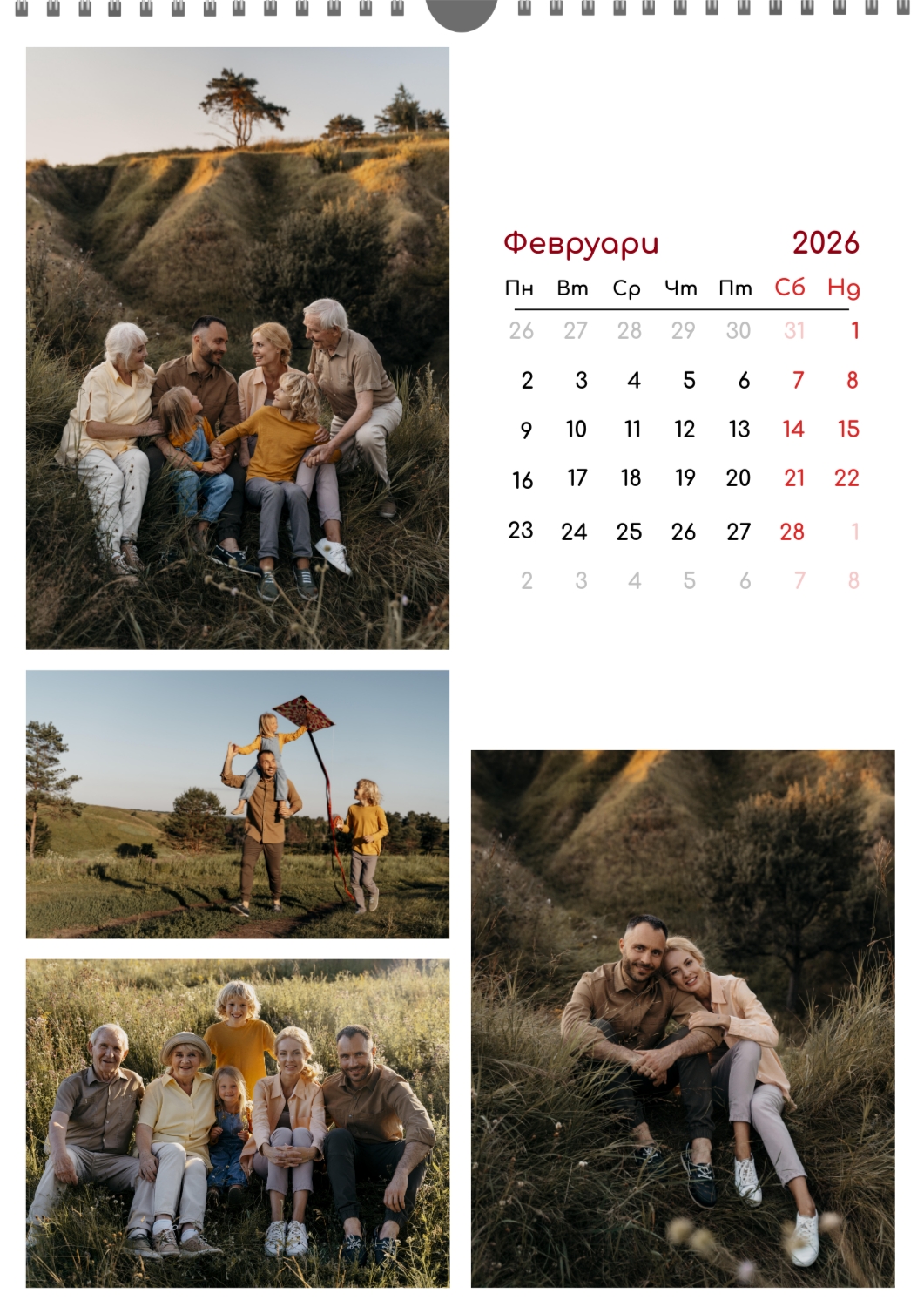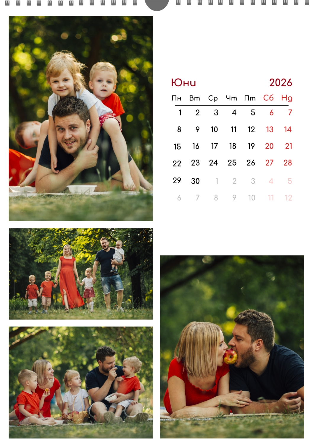 Готовият шаблон за стенен календар" нашето семейство " е създаден за тези, които ценят топлите спомени, атмосферата у дома и искат да проектират всеки месец от годината с душа. Тя се основава на меки, хармонични цветове и спретнати декоративни елементи, които подчертават снимката, без да отвличат вниманието от основното. Такъв календар е идеален за двойки, родители с деца, баби и дядовци, както и за всички, които искат да запазят запомнящите се моменти в разбираема и красива форма. Той е еднакво подходящ както като личен аксесоар за стена у дома, така и като топъл подарък за близки, колеги или клиенти. В онлайн дизайнера този шаблон лесно се трансформира в индивидуални задачи. Можете да замените снимките с любимите си снимки, да изберете различен стил на шрифта, да промените цветовете на надписите и акцентите, да добавите имена, важни дати, запомнящи се събития и семейни празници. Всеки елемент в шаблона може да бъде преместен, мащабиран или изтрит и, ако желаете, да добавите нови декоративни детайли, например малки икони, рамки или тематични изображения. Календарът" нашето семейство " е подходящ не само за домашна употреба. Често се използва от фотографи за създаване на готови продукти за клиенти, детски студия за подаръци на родители, семейни центрове за творчество, както и ръчно изработени майстори, които проектират уютни комплекти и сувенири. Благодарение на удобството на онлайн конструктора, работата с шаблона е напълно неусложнена-дори ако за първи път създавате персонализиран дизайн, процесът ще бъде интуитивен и приятен.