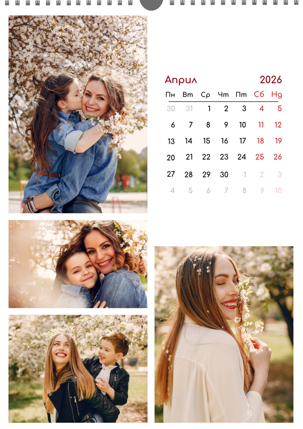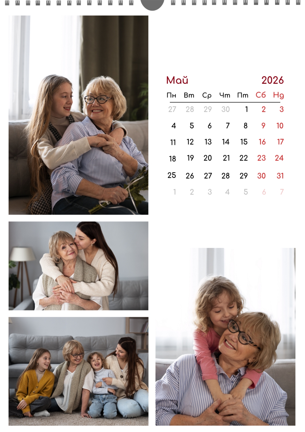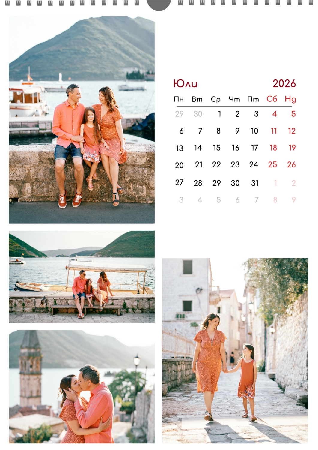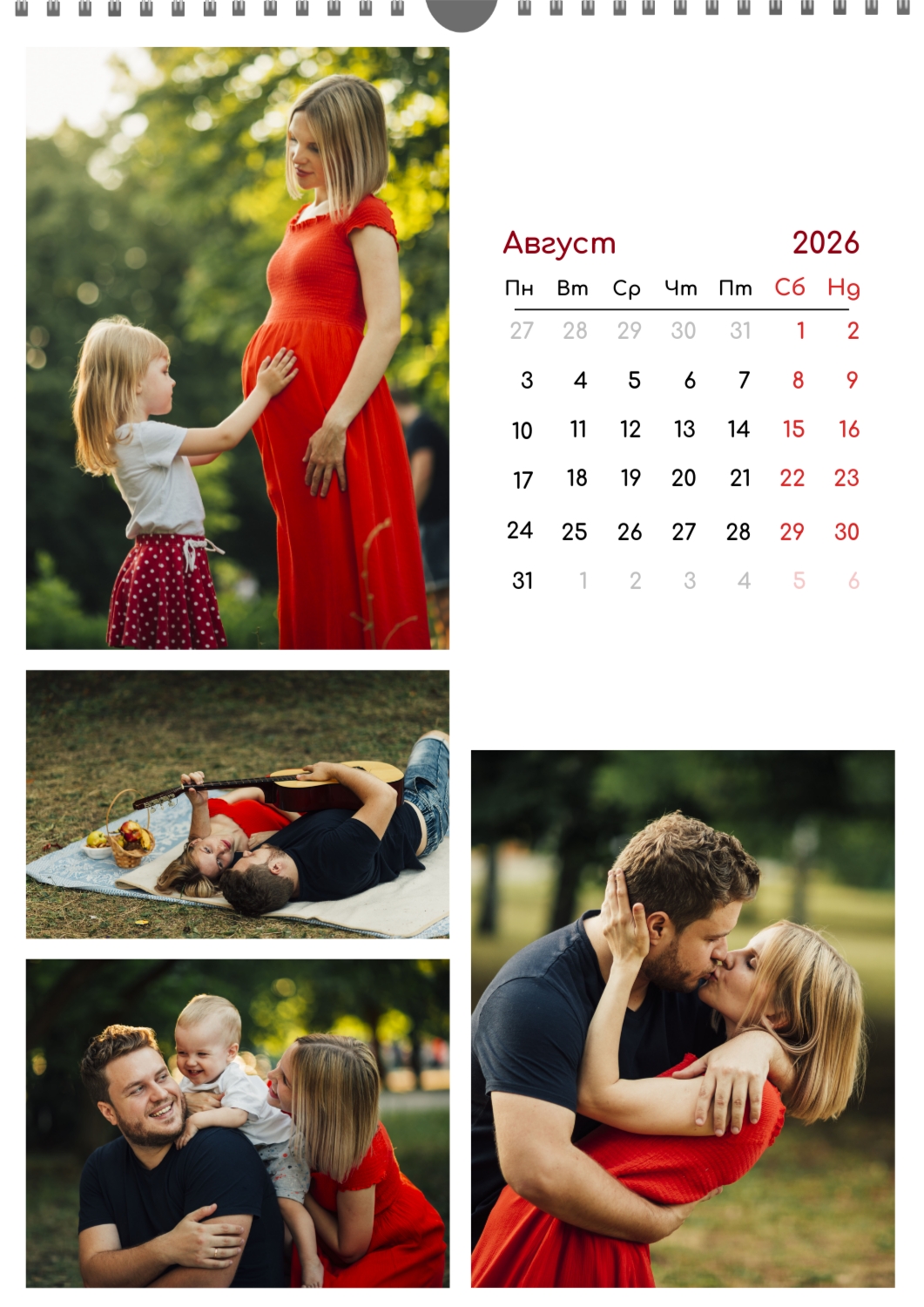 Готовият шаблон за стенен календар" нашето семейство " е създаден за тези, които ценят топлите спомени, атмосферата у дома и искат да проектират всеки месец от годината с душа. Тя се основава на меки, хармонични цветове и спретнати декоративни елементи, които подчертават снимката, без да отвличат вниманието от основното. Такъв календар е идеален за двойки, родители с деца, баби и дядовци, както и за всички, които искат да запазят запомнящите се моменти в разбираема и красива форма. Той е еднакво подходящ както като личен аксесоар за стена у дома, така и като топъл подарък за близки, колеги или клиенти. В онлайн дизайнера този шаблон лесно се трансформира в индивидуални задачи. Можете да замените снимките с любимите си снимки, да изберете различен стил на шрифта, да промените цветовете на надписите и акцентите, да добавите имена, важни дати, запомнящи се събития и семейни празници. Всеки елемент в шаблона може да бъде преместен, мащабиран или изтрит и, ако желаете, да добавите нови декоративни детайли, например малки икони, рамки или тематични изображения. Календарът" нашето семейство " е подходящ не само за домашна употреба. Често се използва от фотографи за създаване на готови продукти за клиенти, детски студия за подаръци на родители, семейни центрове за творчество, както и ръчно изработени майстори, които проектират уютни комплекти и сувенири. Благодарение на удобството на онлайн конструктора, работата с шаблона е напълно неусложнена-дори ако за първи път създавате персонализиран дизайн, процесът ще бъде интуитивен и приятен.