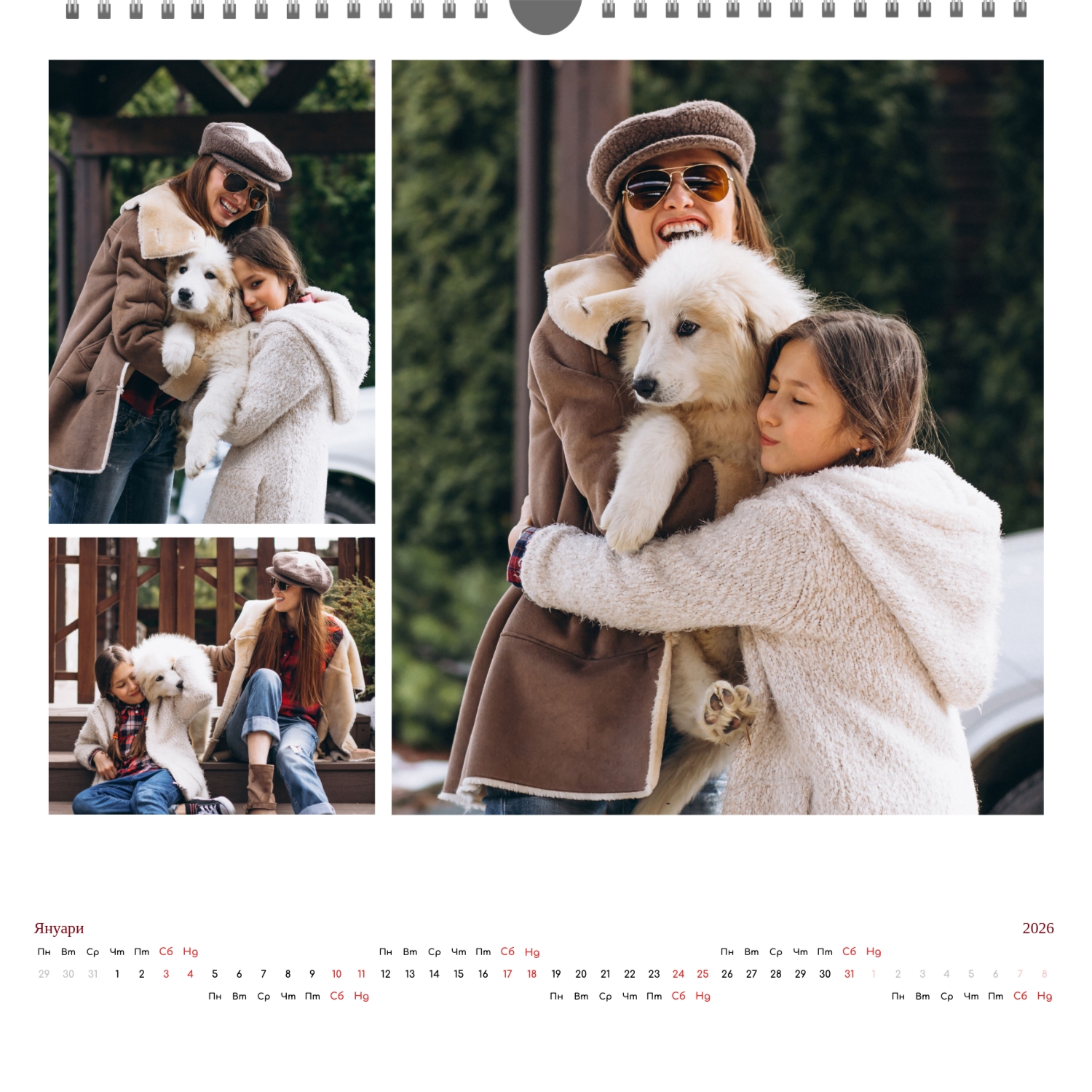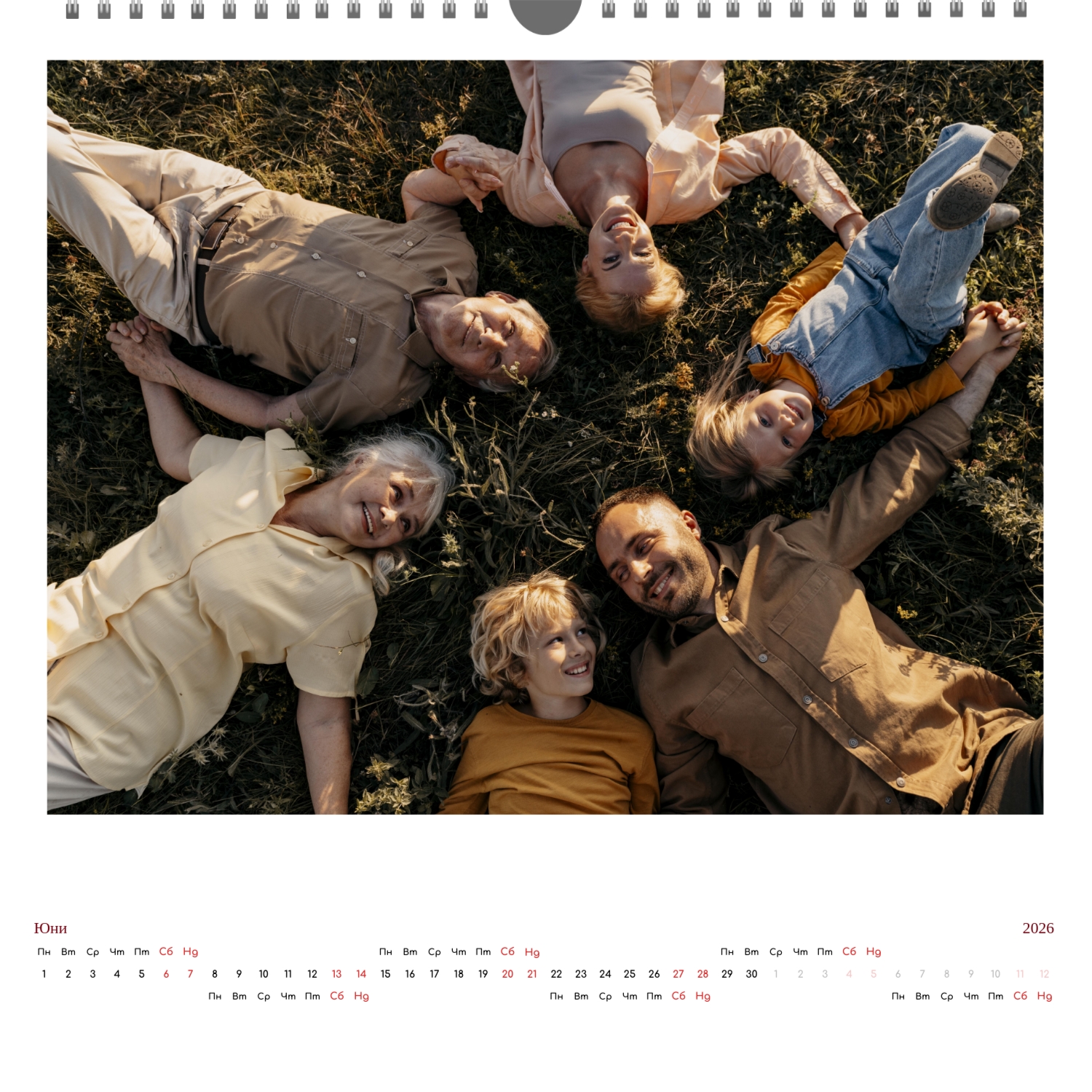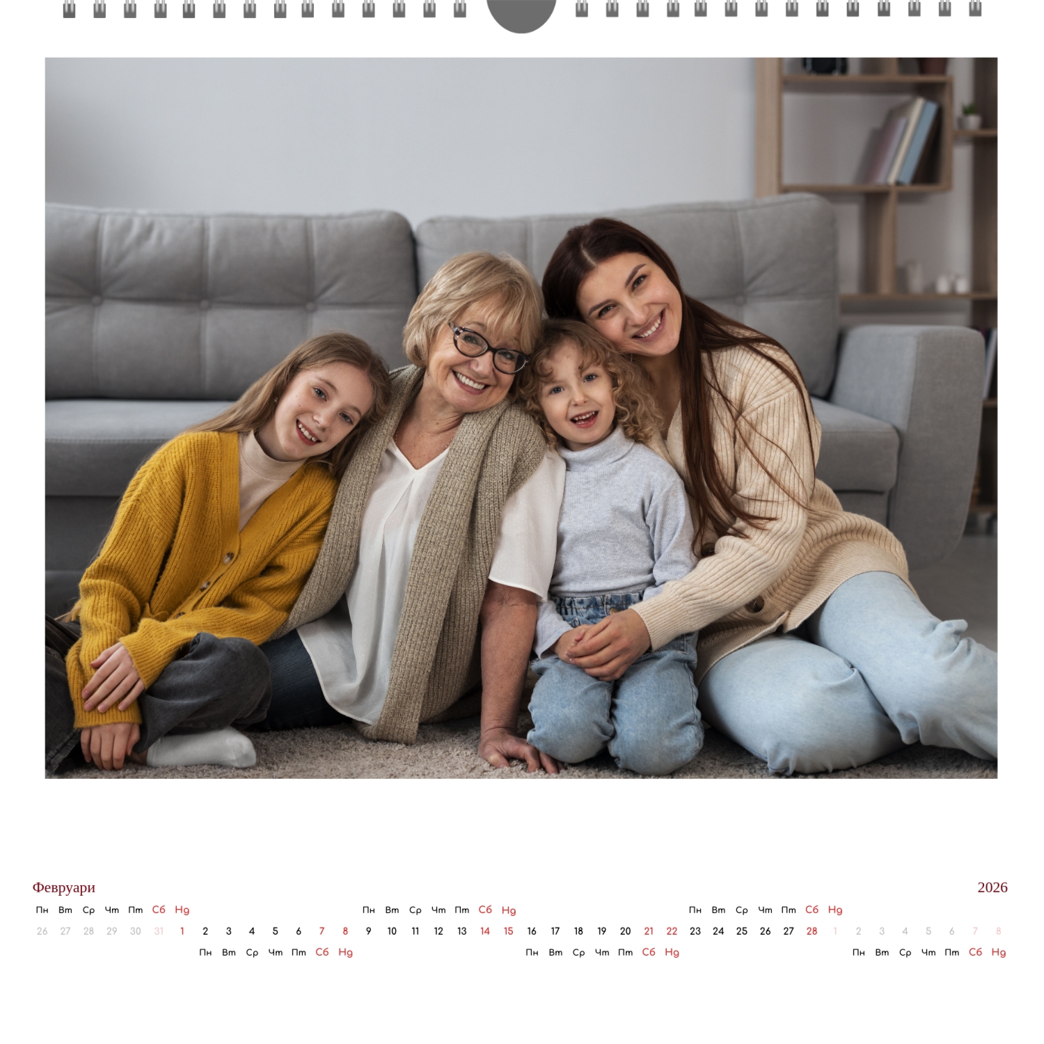 Готовият шаблон за стенен календар с поздравления е направен в минималистичен и модерен стил, където всеки месец поздравява потребителя с кратък поздрав. В онлайн конструктора този шаблон може лесно да бъде адаптиран към лични или корпоративни задачи. Възможно е да промените фона, да изберете други комбинации от шрифтове, да замените поздравителни фрази или да ги оставите в оригиналната им форма, да коригирате цветовата схема, да добавите снимки, илюстрации или фирмени графики. Ако е необходимо, можете да вмъкнете фирмено лого, данни за контакт или мотивационни цитати, така че календарът да стане част от корпоративния стил или личен творчески обект за вдъхновение. Редактирането се извършва директно в браузъра, без да е необходимо да инсталирате допълнителни програми. Всички елементи могат да бъдат премествани, мащабирани и персонализирани, така че календарът да изглежда хармонично и да отразява характера на потребителя или марката. Резултатът е напълно персонализиран календар, направен сам, базиран на добре обмислен шаблон, който остава едновременно удобен, функционален и визуално привлекателен.