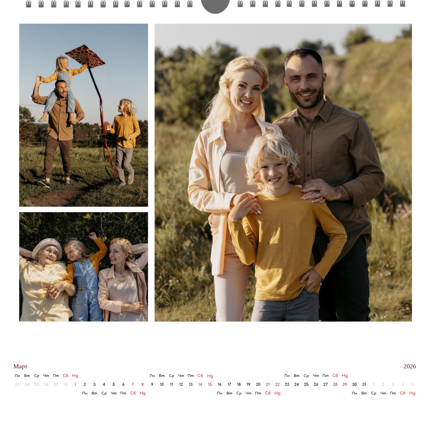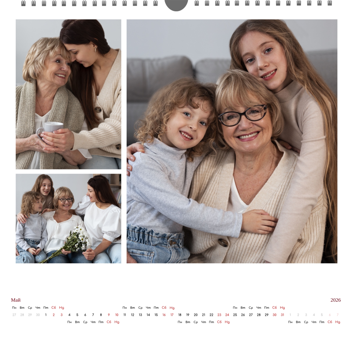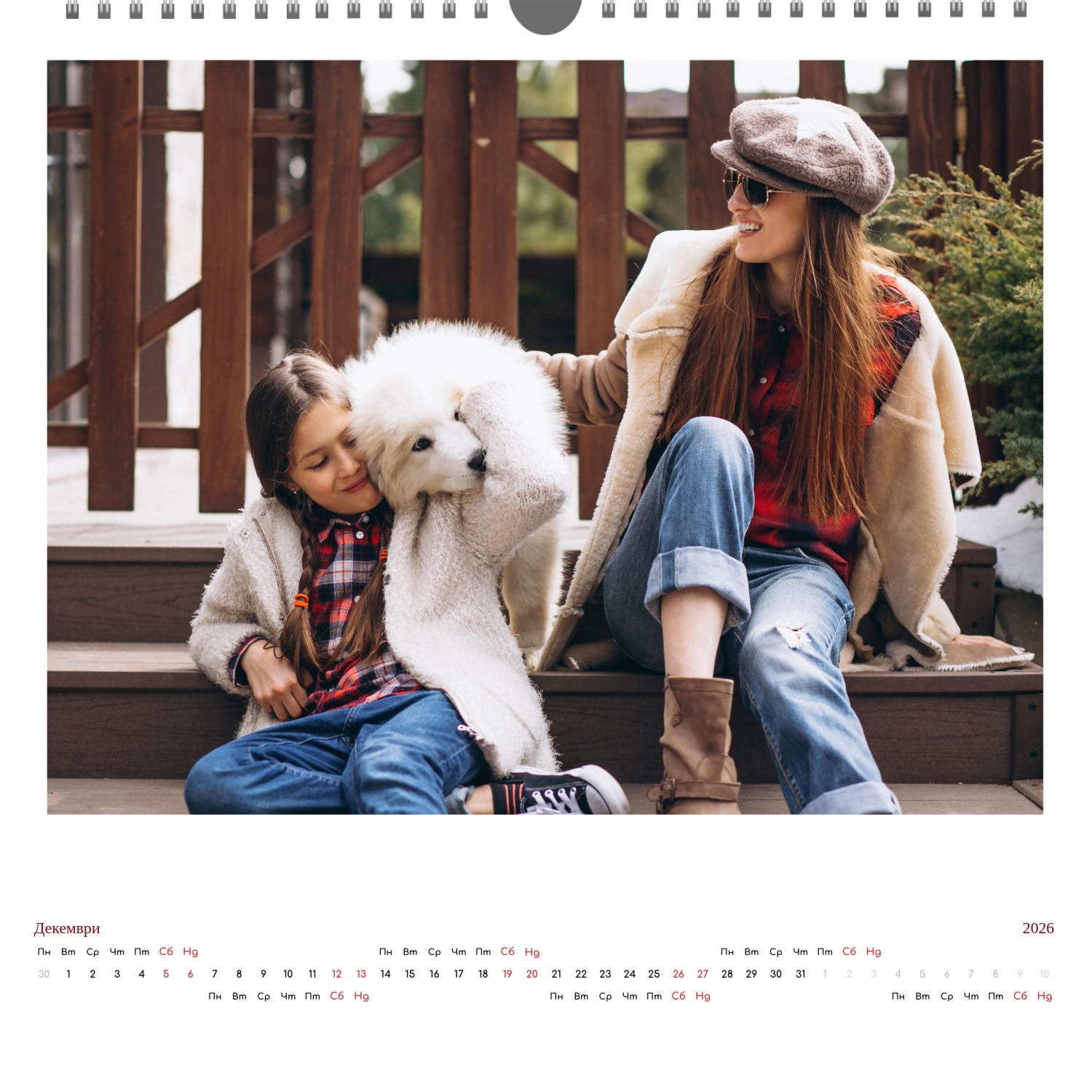 Готовият шаблон за стенен календар с поздравления е направен в минималистичен и модерен стил, където всеки месец поздравява потребителя с кратък поздрав. В онлайн конструктора този шаблон може лесно да бъде адаптиран към лични или корпоративни задачи. Възможно е да промените фона, да изберете други комбинации от шрифтове, да замените поздравителни фрази или да ги оставите в оригиналната им форма, да коригирате цветовата схема, да добавите снимки, илюстрации или фирмени графики. Ако е необходимо, можете да вмъкнете фирмено лого, данни за контакт или мотивационни цитати, така че календарът да стане част от корпоративния стил или личен творчески обект за вдъхновение. Редактирането се извършва директно в браузъра, без да е необходимо да инсталирате допълнителни програми. Всички елементи могат да бъдат премествани, мащабирани и персонализирани, така че календарът да изглежда хармонично и да отразява характера на потребителя или марката. Резултатът е напълно персонализиран календар, направен сам, базиран на добре обмислен шаблон, който остава едновременно удобен, функционален и визуално привлекателен.