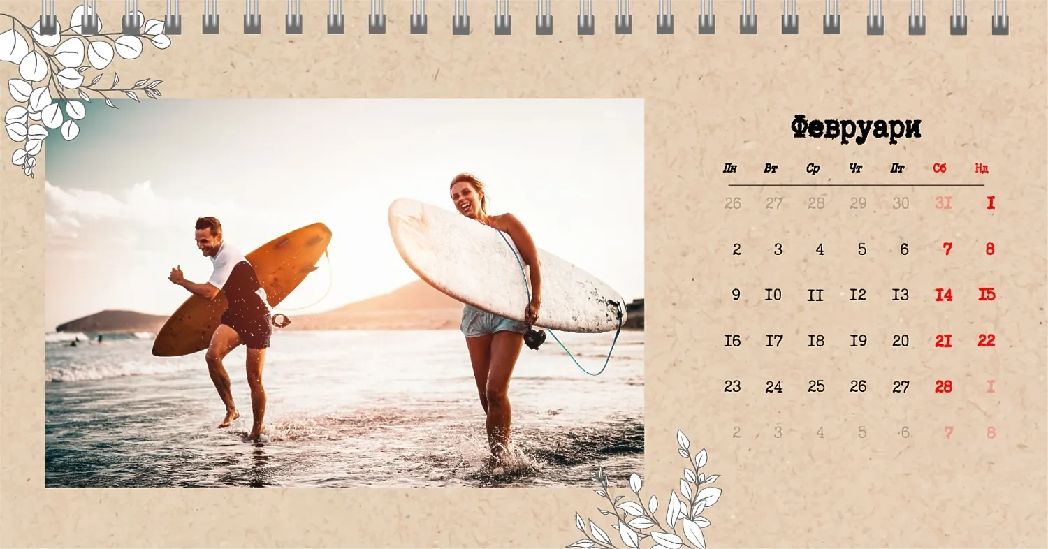 Готовият шаблон за настолен календар с 13 страници с лични снимки е чудесно решение за тези, които искат да създадат уникален и стилен аксесоар за дома, офиса или подаръка. Такъв настолен календар е идеален за хора, които ценят индивидуалността и се стремят да се обграждат с неща, изпълнени със смисъл и мили спомени. Основното предимство на шаблона е неговата наличност в удобен онлайн конструктор. Можете лесно да качвате вашите снимки, да пренареждате елементи, да добавяте текстови коментари, да подчертавате важни дати или събития. Дизайнерът ви позволява да адаптирате шаблона към вашия стил: изберете цветова схема, шрифт и дори Персонализирайте отделни детайли на дизайна.