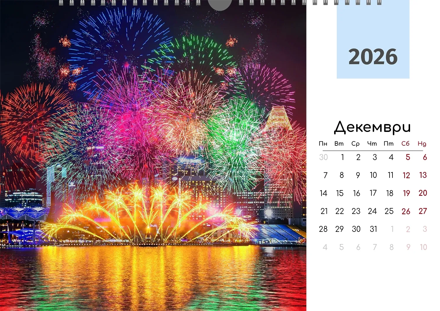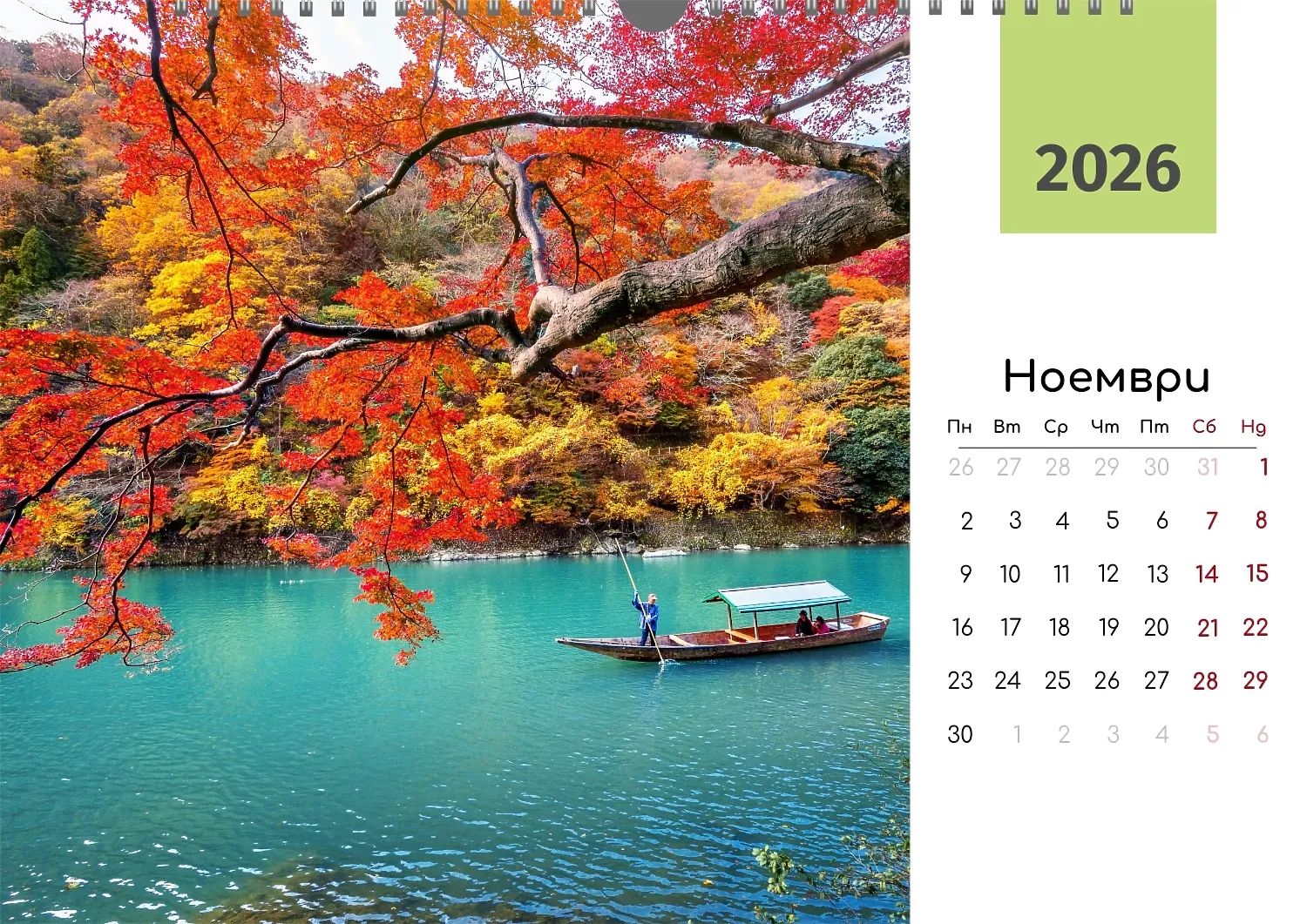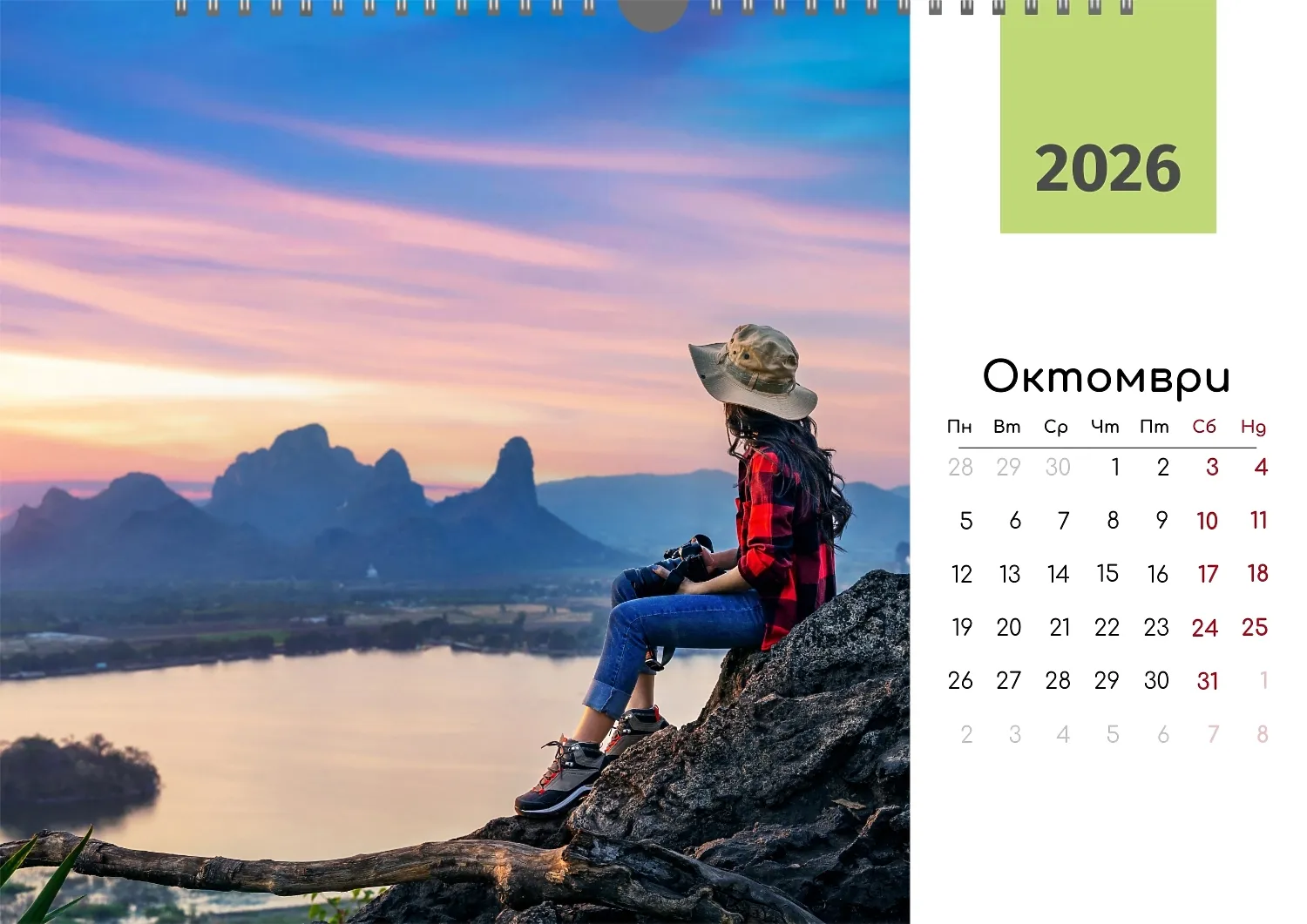 Готовият шаблон за стенен календар за снимки за пътуване е идеалният инструмент за създаване на персонализирано парче, което ще бъде истинско отражение на вашата любов към откритията и акцентите. Този шаблон, разработен в нашия онлайн дизайнер, предлага универсална база за проектиране на стенен календар с уникални снимки, свързани с пътувания. Такъв стенен хоризонтален календар ще бъде чудесно решение за професионалисти, чиято работа е свързана с туризъм, пътуване или организиране на събития. Той е идеален за туристически агенти, екскурзоводи, фотографи и блогъри, които говорят за пътувания. В допълнение, шаблонът е полезен за компании, занимаващи се с популяризиране на туристически дестинации, както и за лична употреба — например като подарък за приятели и близки. Можете лесно да добавяте свои снимки, да променяте цветове и шрифтове, да добавяте бележки и възпоменателни дати. Дизайнерът ви позволява да адаптирате шаблона към всяка задача и да създадете наистина уникален продукт. Не е нужно да имате специални дизайнерски умения — интерфейсът е прост и интуитивен. Всеки елемент от календара може да бъде персонализиран така, че да отговаря напълно на вашите предпочитания.
