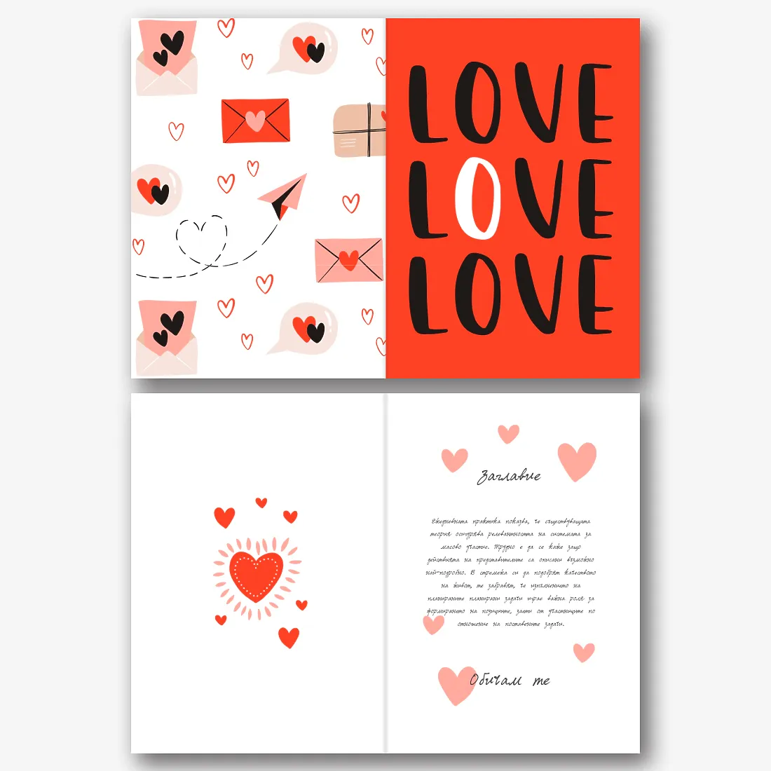 Готовият шаблон за картичка за Свети Валентин е универсална основа за топъл, емоционален дизайн, който лесно се адаптира към различни задачи. Обикновено съчетава романтични цветове, меки форми, сърца, деликатна типография и спретнати декоративни акценти, създаващи усещане за уют и искреност. Такъв шаблон работи добре не само като класическа поздравителна картичка, но и като визуална база за по-нестандартни продукти, например за създаване на уникален календар с любовна тема. Този дизайн е идеален за професионалисти от областите Маркетинг, Реклама и 5, за които е важно бързо да подготвят сезонно съдържание за Марки, кафенета, салони за красота или онлайн магазини. Той ще бъде подходящ за фотографи, дизайнери, организатори на събития и сватбени специалисти, както и за корпоративни клиенти, които искат да поздравят служители или партньори в топъл и неформален стил. В онлайн дизайнера шаблонът се разкрива възможно най-гъвкаво. Всички елементи могат да бъдат редактирани: променете текстове, шрифтове и техния размер, коригирайте цветовата палитра към корпоративната идентичност или конкретно настроение, добавете свои собствени снимки или илюстрации. Ако използвате този шаблон, за да създадете календар със собствените си ръце, можете лесно да замените поздравителните блокове с календарна решетка, да разпределите месеци, да добавите запомнящи се дати, имена или кратки съобщения за всеки месец. Оформлението ви позволява свободно да премествате елементи, да променяте мащаба им и да създавате наистина уникално оформление без професионални дизайнерски умения. В резултат на това в онлайн дизайнера този шаблон се превръща не само в картичка за Свети Валентин, но и в пълноценен инструмент за създаване на личен календар с романтично настроение, който ще изглежда обмислен, спретнат и наистина индивидуален.